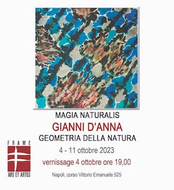 Ma, finalmente, in queste ore siamo appunto in un mondo anomalo, naturalistico e immaginifico, creato, nella galleria d'arte Frame Ars et Artes (Corso Vittorio Emanuele 525) di Paola Pozzi, da Gianni D’Anna.