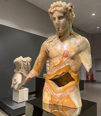 Lo scultore realizza site specific, opere apposite in un museo famoso per l'enorme patrimonio archeologico in chiave di confronto con il passato giocando nel dialogo antico e inedito.
