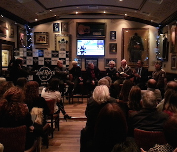 Io sono andato al secondo evento, da Dario Salvatori all’Hard Rock Cafè a via Veneto, un po’ costretto dal fatto che quello di Guccini era troppo affollato, nonostante la capienzadel teatro Eliseo, e forse più serioso nonostante la presenza dei mitici Ernesto Assante e Gino Castaldo.