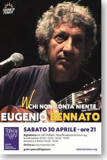 Eugenio Bennato conclude ufficialmente il tour del suo concerto “W chi non conta niente”, con due significative novità esclusive: la presenza in scaletta del nuovo brano inedito “Welcome to Napoli”, dedicato a Napoli, città aperta dell’accoglienza, che il cantautore interpreterà con la partecipazione di tre musiciste ucraine e russe.