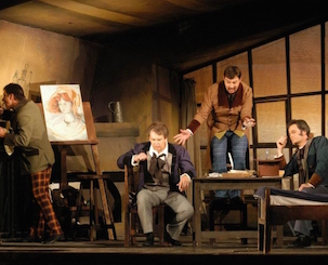 È un emblematico presepe quello che il fondale e la scena del primo quadro rappresentano come la soffitta che i quattro squattrinati artisti condividono a Montmartre. Rodolfo il poeta, Shaunard musicista, Marcello pittore e Colline filosofo, rendono perfettamente il clima spensierato, “euforico con leggerezza” di provvisorietà esistenziale, tipico del quartiere latino a Parigi, fine secolo (‘800).