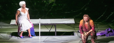 Dagli inferi del primo tempo alla foresta mistica e deserta del secondo, la scena presenta l'incontro fra Wotan e Alberico (il basso Markus Jupiter),sottolineata dal tema del drago Fafner (il basso István Rácz).