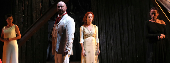 L'enormità dell'evento tragico che conduce alla catarsi della vicenda, troverà anche nel contenitore scenico un corrispettivo del proprio annientamento, come quello degli animi di chi sopravvive, annichilito dalla vicenda.