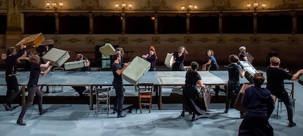 In una Pergola ridisegnata per l’occasione, va in scena l’ultimo dei racconti, The Dead (I Morti),e il dodicesimo, Ivy Day in the Committee Room (Il giorno dell’edera) dei quindici scritti da James Joyce agli inizi del Novecento sull’esistenza statica e alienata dei dublinesi di cui l’autore faceva parte. Spariscono le quinte e lo spettatore è immerso nella atmosfera grigia e fumosa di una Dublino in cui personaggi stanchi e sfiniti si trascinano nella vana speranza di trovare uno slancio, un sussulto di vita.