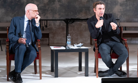 A questo punto, Marco Giorgetti riprende la parola per sottolineare quanto sia importante in un momento delicato come quello attuale, essere punto di riferimento per chi cerca casa: il teatro La Pergola e il de la Ville si sono attivati offrendo residenza ad artisti ucraini che scappano dalla guerra.