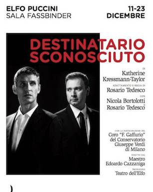 A Milano la Storia del XX secolo si racconta tra prosa e musica con la nuova edizione del Destinatario sconosciuto nell'adattamento di Rosario Tedesco, dall'11 al 23 dicembre 2018, al Teatro dell’Elfo di Milano, con la partecipazione del Conservatorio Giuseppe Verdi di Milano, ed il Coro di voci bianche “F. Gaffurio”.