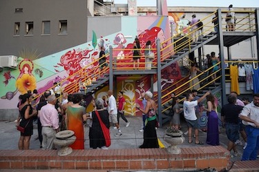 Un’opera murale dal titolo oMaggio, significativo ricordo di Mariella Lo Giudice nei dieci anni della sua scomparsa, rinnova una volta di più il volto del Teatro Stabile di Catania e il segno della sua presenza nel contesto cittadino, grazie ad un progetto tutto al femminile che tiene insieme le arti visive e quelle teatrali. Il murale che è stato “svelato” il 9 luglio sulla facciata laterale dell’edificio della Sala Verga è stato realizzato dalle MaleTinte con il patrocinio dell’Accademia di Belle Arti e il supporto del Teatro Stabile di Catania.