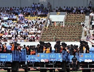 L'agenzia di stampa ufficiale Xinhua ha detto che 7.000 cittadini e funzionari hanno assistito alla pronuncia della sentenza collettiva in uno stadio della prefettura di Yili.