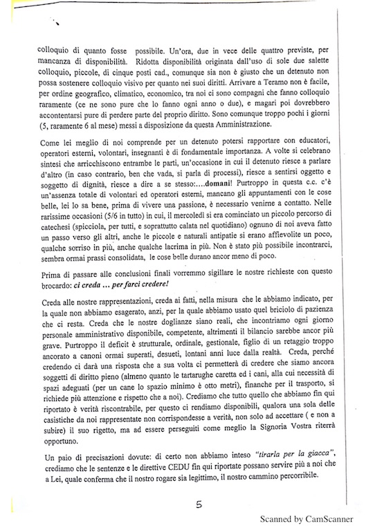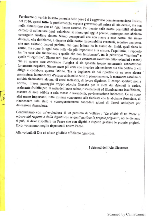 La lettera dei detenuti
