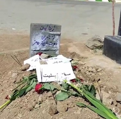 “Jîna giyan, to namirî, nawit ebête remiz” (“Jina, anima mia. Non morirai. Il tuo nome diventerà un simbolo”), queste sono le parole curde incise sulla lapide di Mahsa Jina Amini dalla sua famiglia,[1] pochi giorni prima è diventata il simbolo nazionale della rivoluzione contro la Repubblica islamica dell'Iran.