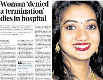 In Irlanda l'aborto è illegale ed è possibile solo quando serve a salvare la vita della madre. Nel caso specifico evidentemente qualcosa non ha funzionato nell'applicazione di una legge comunque liberticida. (red.)