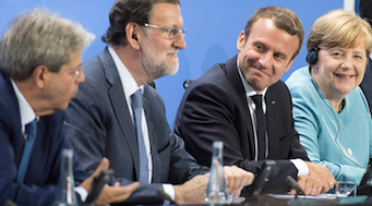 Al tavolo dell’Eliseo sedevano da una parte i rappresentati dei paesi africani (Ciad, Niger e Libia) e dall’altra quelli dei paesi europei invitati (Francia, Germania, Italia e Spagna), che dopo la Brexit sono i più grandi dell’Unione e ne rappresentano la maggioranza della popolazione complessiva.