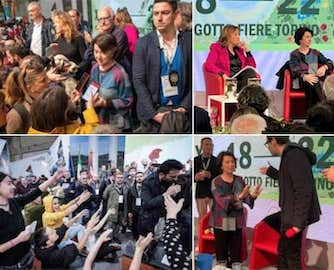 Eugenia Roccella, ministro per la Famiglia, durante la presentazione del suo nuovo libro Una famiglia radicale (Rubbettino ed.) al Salone del Libro di Torino, è stata aspramente contestata da gruppi di attiviste di alcuni movimenti (Extinction Rebellion, Non una di meno ecc.).