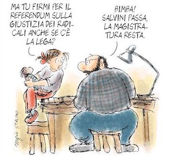 Viene da chiedersi come mai e la risposta va cercata nella sottovalutazione del valore prettamente politico di questi referendum, di cui non si coglie evidentemente la portata di alternativa rispetto alla deriva degli ultimi trent’anni. Oppure, al contrario, la si coglie fin troppo e proprio perciò non si ha il coraggio di esplorarla fino in fondo. Quanto alle forze come il PD o i 5Stelle, pesa con tutta evidenza la completa subalternità al protagonismo di alcuni settori della magistratura, con i quali si intende mantenere le relazioni intercorse finora all’insegna della condiscendenza al giustizialismo e all’anti-politica che di fatto è fra le cause principali dell’attuale stallo del Paese.