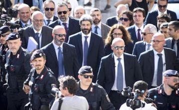 Dove abbiamo già visto quella scena? In un primo momento avevo pensato al feroce cavalier Catellami (o Catellani: è una questione filologica aperta), il Gran Maestro dell'Ufficio Raccomandazioni e Promozioni che avanza per i corridoi della megaditta di Fantozzi circondato dai suoi lacché. Chissà che Roberto Fico non faccia piazzare nell'atrio di Montecitorio la statua della mamma che fa la maglia, così che tutti i deputati possano renderle omaggio all'entrata e all'uscita.