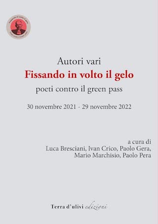 Fissando in volto il gelo – Poeti contro il Green Passè un antologia di poesie a cura di Luca Bresciani, Ivan Crico, Paolo Gera, Mario Marchisio e Paolo Pera (Terra d’ulivi edizioni, 2023) che raccoglie un’ampia selezione di testi pubblicati sul blog “Fissando in volto il gelo – Poeti contro il Green Pass”, in un arco di tempo che va dal 30 novembre 2021 al 29 novembre 2022.