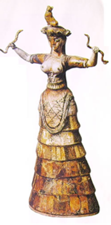 In verità, secondo i nostri canoni estetici, la Venere di Willendorf, come altre sue colleghe contemporanee, non è bella né elegante. Lo diventerà poi, in altre raffigurazioni, quando, ad esempio, nel secondo millennio a. C., la dea dei serpenti dall’isola di Creta ci si mostra con l’eleganza civettuola della gonna a volants e la vita stretta in un bustino che sostiene la scollatura abissale che lascia il seno fiorente completamente scoperto. E poi, figurazioni di donne sempre belle e dolci, tantissime nel corso dei secoli, ve ne sono e come.
