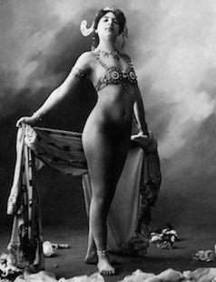 Era bella. I suoi vestimenti leggeri sembravano il trionfo di Cleopatra. I suoi bracciali, le sue collane, i suoi orecchini nel suono della presenza d’Oriente. La danzatrice, quella che fu definita la spia più enigmatica e più elegante, la cortigiana più amata dalla aristocrazia militare di quegli anni.